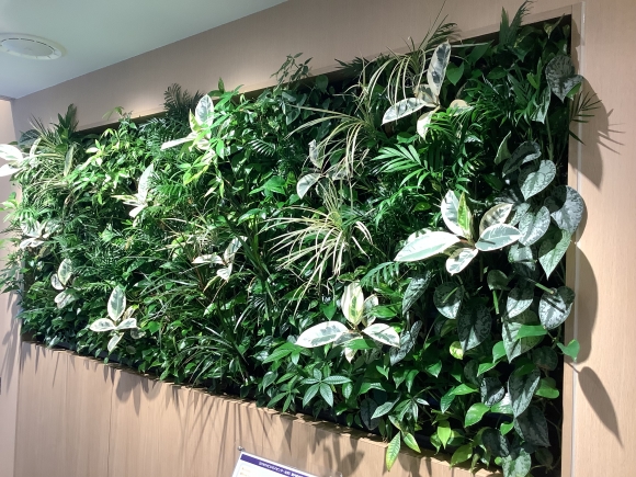 壁面緑化の植物が夏仕様に変わったことについてご紹介いたします!